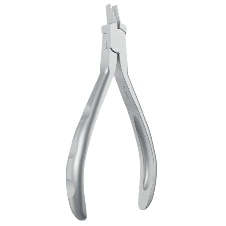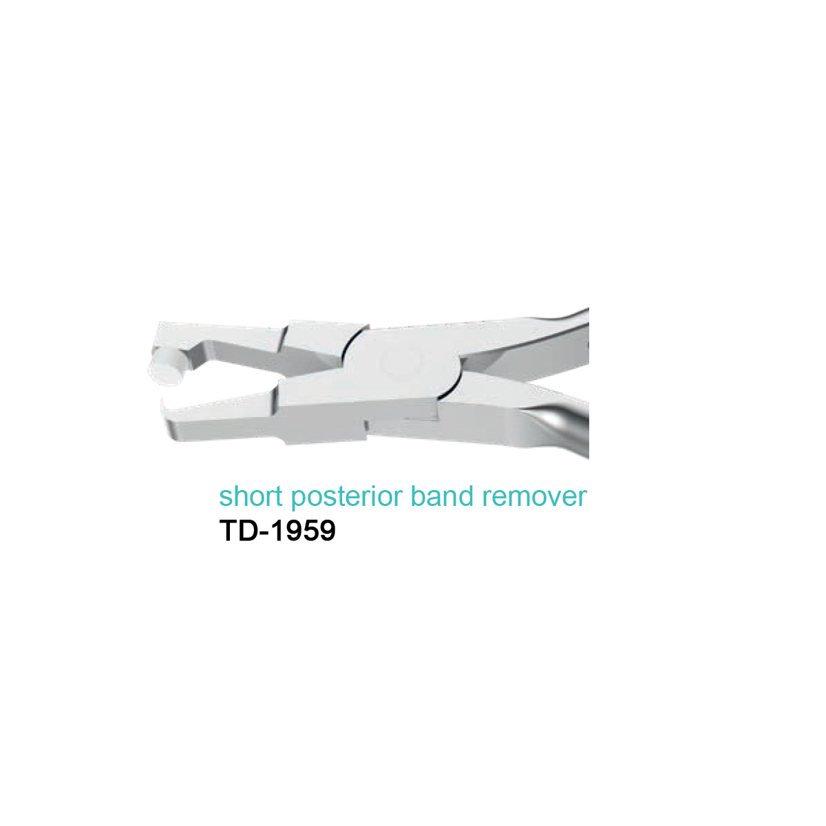 Posterior band and bracket removing pliers, short. The tip is aligned below the lower end of the occlusal pad